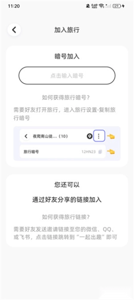 4、计入旅行,可以点击暗号加入。