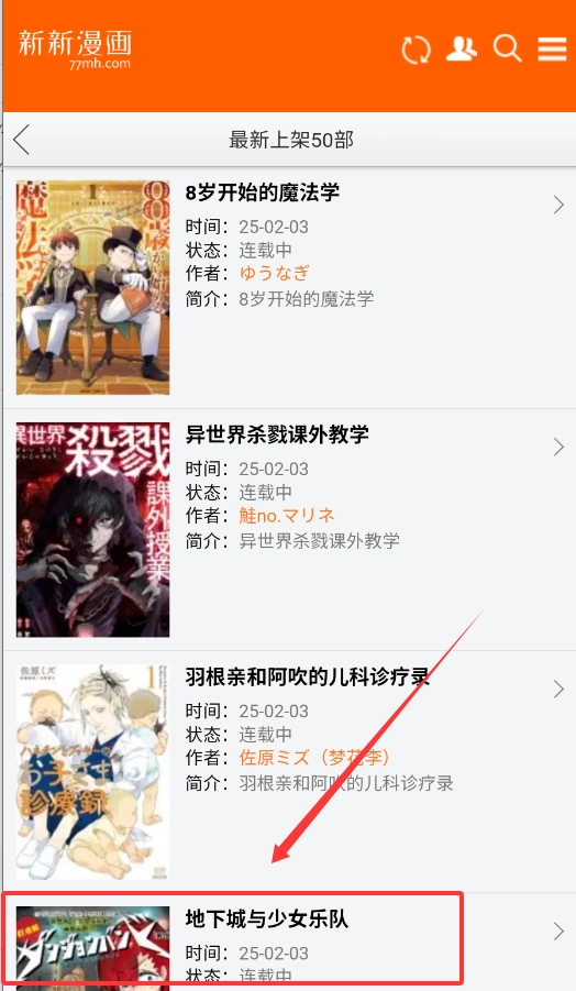第四点,留意“最新上架”板块,该区域会呈现作品的状态与简介信息,例如“地下城与少女乐队”在此处就能看到其处于连载中的状态。