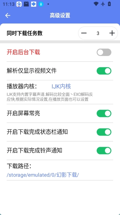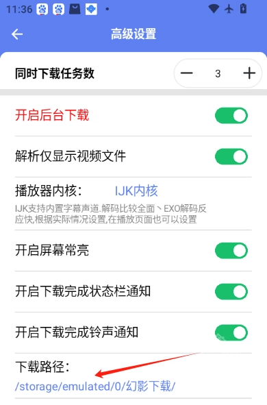 2. 在高级设置中能够看到路径(安装后的默认路径为/storage/emulated/0/幻影/),幻影文件就存放在这个目录里面。
