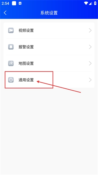 3、进入【系统设置】页面后,可选择【视频设置】【报警设置】【地图设置】等选项,点击【通用设置】即可进入对应的配置界面。