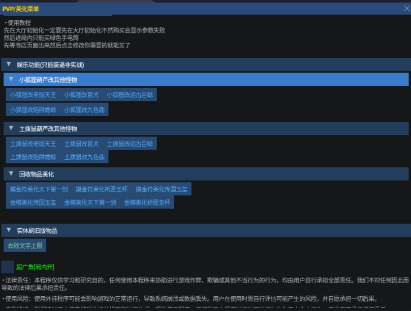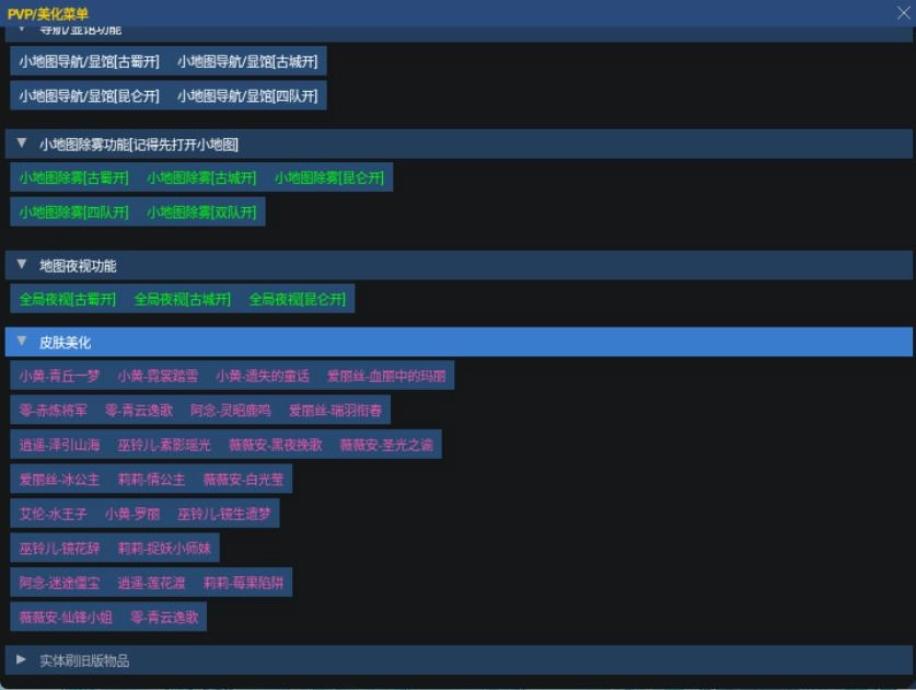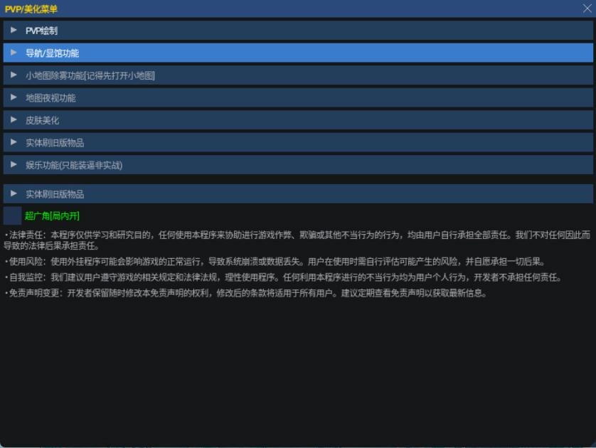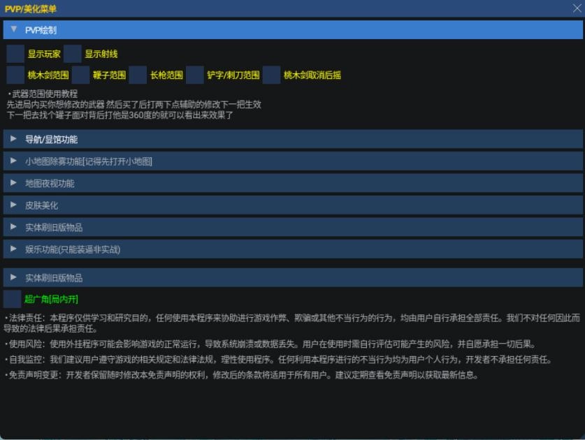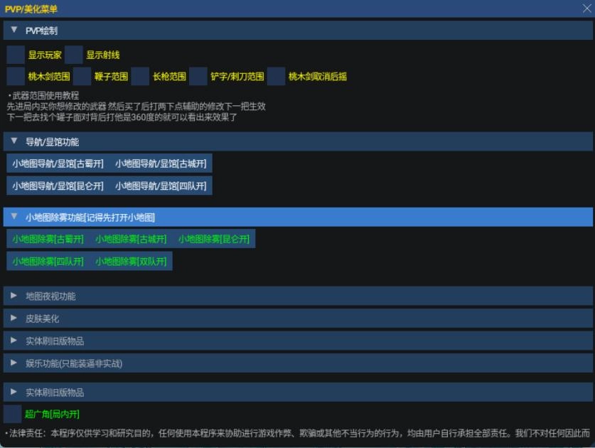 1、支持PVP绘制、小地图除雾、全局夜视功能,同时允许自定义除雾范围和显棺透明度。