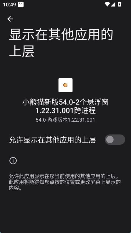 1、打开小熊猫辅助器后,首先允许显示在其他应用上层