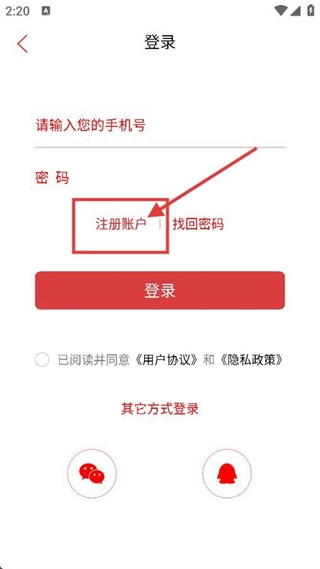 3、在登录界面中,点击【注册账户】选项,进入账号注册的操作页面,准备完成新账号的创建。
