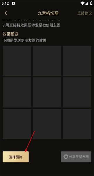 1、打开软件后,查看效果预览区域,找到选择图片按钮,点击后进入图片选择界面。