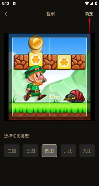 4、确定好裁剪样式后,查看图片的分割效果,点击右上角的确定按钮,即可完成图片的九宫格裁剪操作。