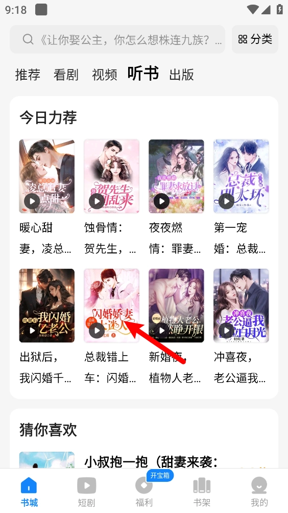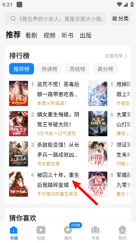 1、打开软件,进入书城中选择并打开喜欢的小说。
