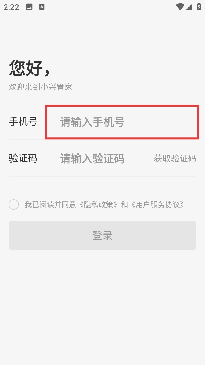 1、第一步,用户打开软件后,在方框内输入手机号进行下一步。