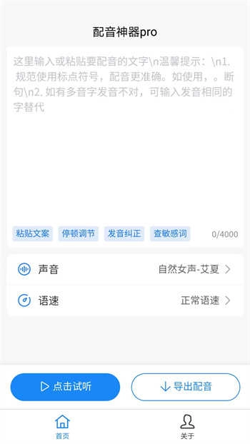 它并非简单的配音工具,而是你的随身声音工作室:轻点一下即可启动AI语音合成引擎,以毫秒级速度生成自然流畅的配音内容;涵盖生活化、新闻感、萌趣风、严肃播报等丰富发音风格,能适配不同人设与内容调性;不管是口播视频、带货广告、知识科普还是情感短剧,都可精准匹配最贴合的声音表达。