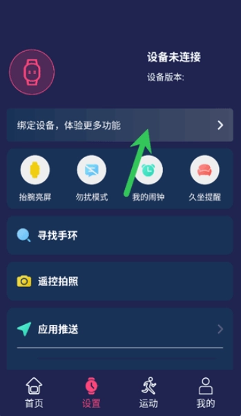 1、打开蓝牙与智能手环完成配对,进入设置界面将手表设备进行蓝牙配对连接