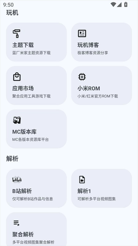 2、往下拉,我们能够看到玩机、短视频解析功能。