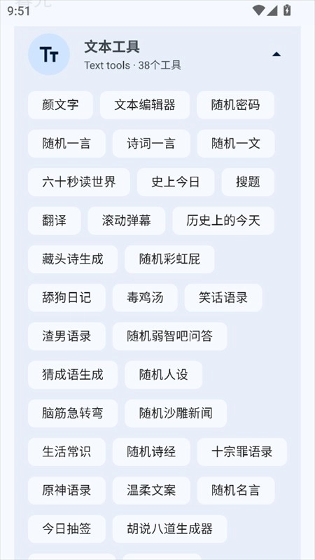 更多>多功能的工具箱软件有哪些?让你们都能在各个时刻找到你们想好的各种手机工具,相机、水印、闹钟、绘图、录音、测量、翻译等等多种功能,赶紧来点击你想用的各种功能吧,直接用,免费用,多个功能及时用。