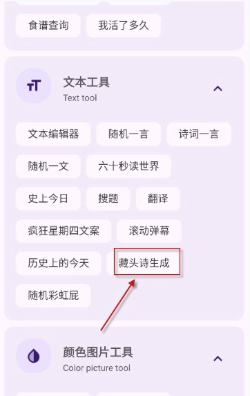 2、向下滑动找到“藏头诗”选项