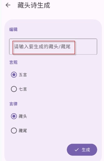 3、输入想要生成的藏头或者藏尾诗内容