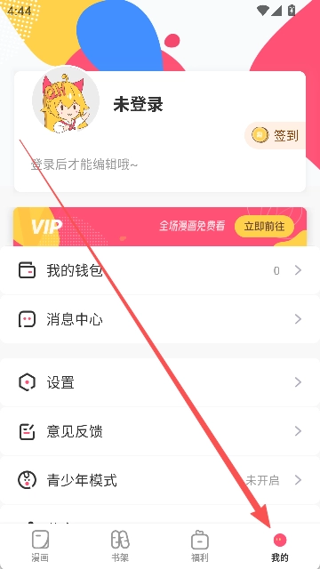3.点击【我的】,再点击头像处的【未登录】进行登录