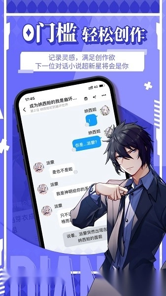 如果你是二次元文化的爱好者,渴望感受沉浸式的小说阅读体验,这款软件一定不容错过。点鸭把热门动漫游戏角色植入对话小说,让你以主角视角和钟离、琪亚娜等角色开启互动冒险;独特的聊天式阅读形式结合表情包与图片,让每段故事都如同和好友聊天般轻松惬意。丰富的同人作品实时更新,从原神到假面骑士,总能找到你钟爱的内容,而且创作门槛不高,还能获得奖励。感兴趣的话就来试试吧!