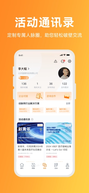 动脉网全新版本是医疗领域的专属一站式资源平台,集资讯获取、会展参与、人脉拓展、资源对接等核心功能于一体,服务覆盖超500万医疗从业者。平台借助实时直播活动助力企业打破传统宣传壁垒,构建精准人脉网络,达成跨领域资源共享;每日更新全球医疗产业资讯,覆盖生物医药、器械耗材、数字健康等五大板块,支持多语言资讯实时推送;用户能够直接对接报道中的企业决策层,快速捕捉合作契机。若想体验高效的医疗资源对接服务,不妨即刻尝试。