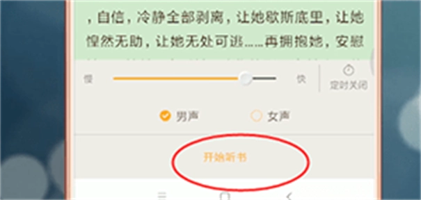 在弹出的听书菜单里,按照自己的喜好挑选对应的选项,点击【开始听书】按钮,这样就完成啦