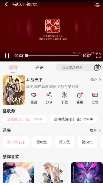 3、然后随意挑选一部动漫,这里我拿“斗战天下”来举例,点击就能播放了。