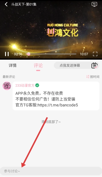 4、播放界面,可以直接参与最新的评论内容。