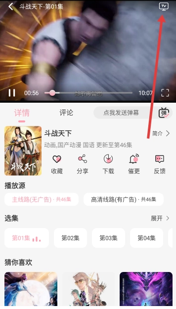 5、随后点击右上角的“tv”图标,只要保证手机与投屏设备处于同一wifi网络环境中,就能完成投屏操作。