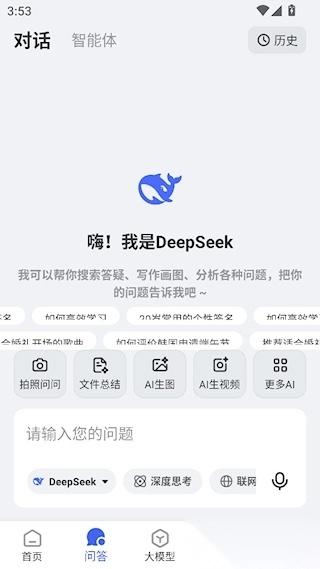 2、问答界面支持切换不同AI模型进行智能对话