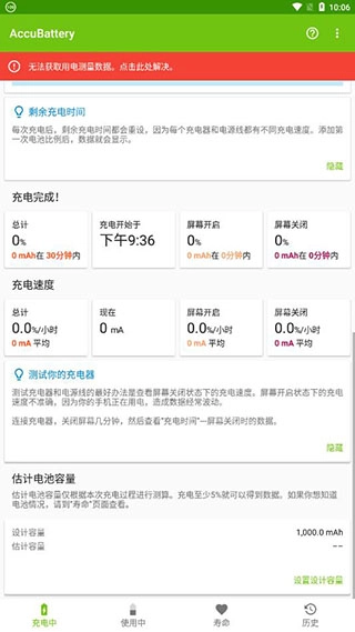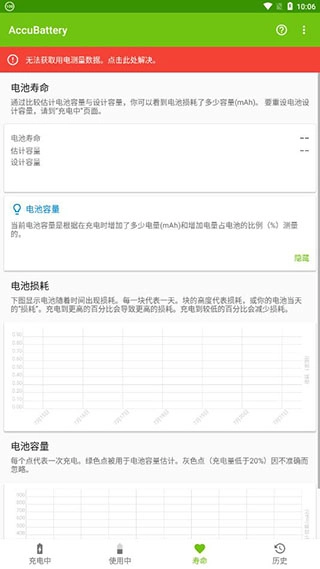 1、充电页面:显示充电周期未包含在电池健康计算中的原因。