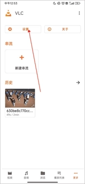 1、从本站vlcplayer安装并运行,点击左下角的更多,点击新建串流。