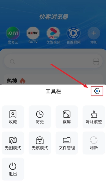 快捷操作工具栏:提供收藏、历史、截屏、清除痕迹等一键操作