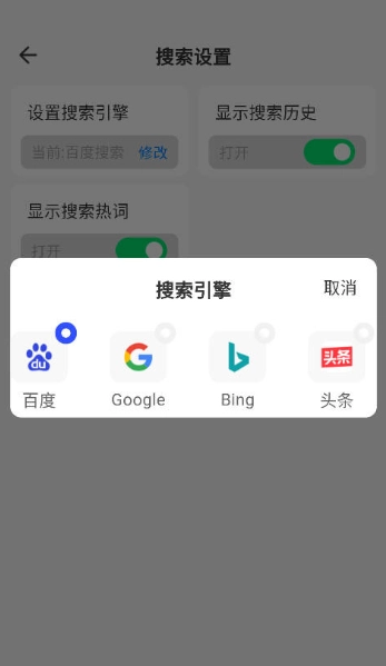 4、在搜索引擎的设置界面里,您能够选择切换成百度、谷歌等其他不同的搜索引擎。