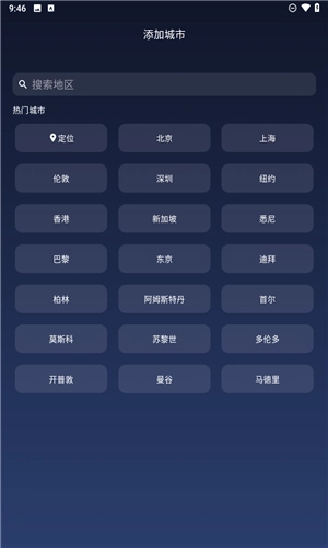 1、可以将自己常看的地区天气添加到收藏中,方便随时查询想要了解的天气情况;