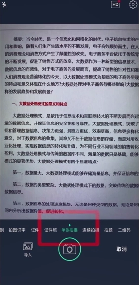 2、手机拍照文档,自动切边去除杂乱背景,生成JPGG图片或PDF。