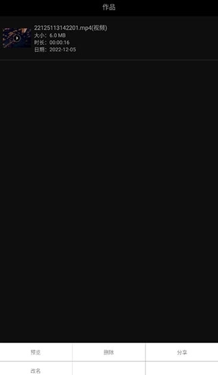 6、保存的作品将在【作品】栏目中,你可以从软件中轻松分享出来