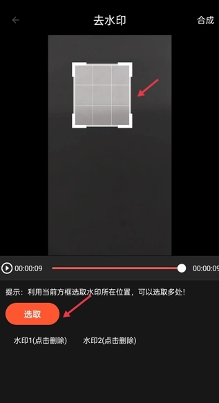 2、通过当前方框来选取水印所在的位置,可以选取多个。