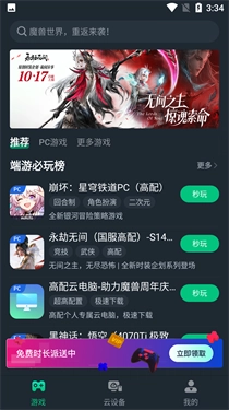 更多>真正免费的云游戏有哪些?这就为你推荐提供云游戏的平台,超多你们想玩的多种类型的云游戏,一键登录承接你的游戏历史,记录,想玩的云游戏,每一款都能继续畅玩,都是真正免费的云游戏平台,想玩就玩。