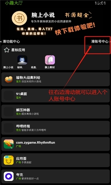 2、然后打开软件进入首页,往右边滑动进入账号中心