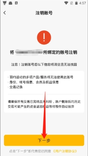 5、查看注销相关的信息,确认无误后,点击下方“下一步”;