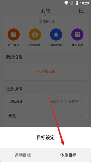 第3步。选择体重目标。如图所示。