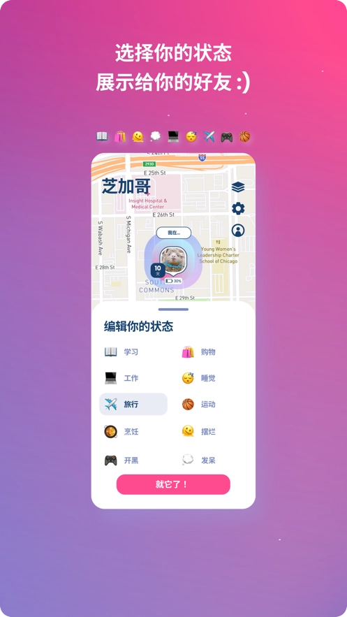 1、方便用户去进行自己的位置动态分享,各种互动方式简单去掌握,还可以了解到更多信息;