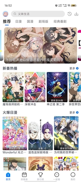 2、进入首页为用户推荐了很多不同类型的动漫资源,日漫、韩漫以及国产动漫等都有。