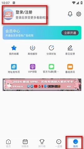 第一步:打开三号动漫,点击【我的】,点击【注册】。