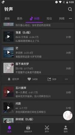 1、花样的铃声类别,汇集了抖音、网络、DJ以及搞笑、萌宠类铃声;