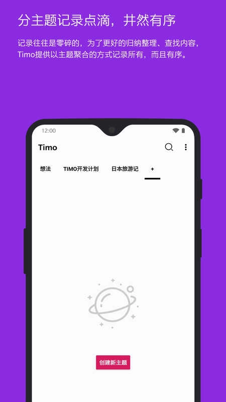 记录内容常常是零散的,为了更高效地归纳梳理、检索信息,Timo支持通过主题聚合的方式来记录内容。
