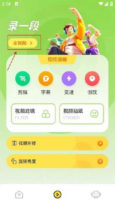 1、后打开进入,在录视频界面中点击上方的录视频;
