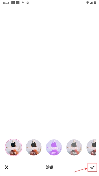 4、选择照片添加滤镜然后点击右下角保存