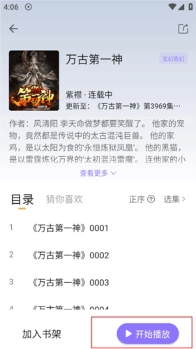 2、选择章节,进入听书页面。