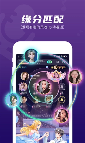 2、语音聊天室,支持扩列交友、在线派单、相亲交友、温暖电台、歌手点唱等功能。