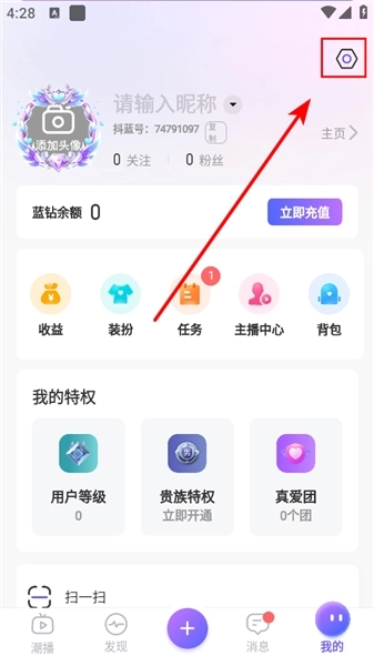 1、-我的-右设置-切换账号,进行添加或注册新账号或者点击我的,昵称右侧倒三角,即可切换账