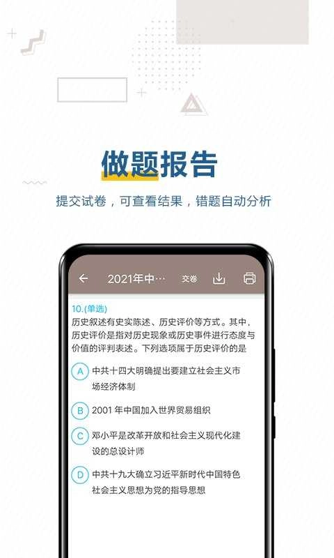 3、应用为学生提供每道题目相关的详细解析,帮助用户深入理解历史知识点,提高解题能力;