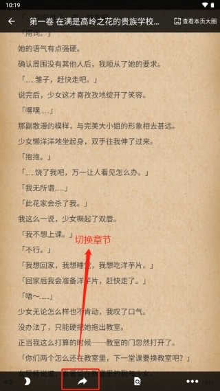 3、阅读完毕当前章节后,点击图示位置可以切换章节