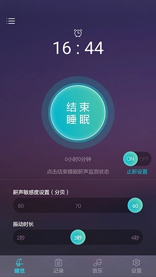 3. 支持后台模式,即便在运行其他应用的过程中,也可以不间断地监测睡眠状态。